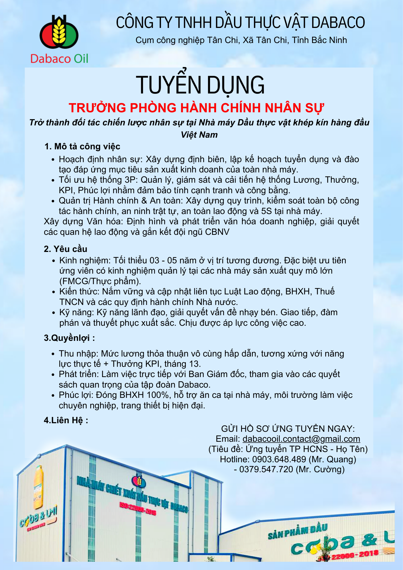 TRƯỞNG PHÒNG HÀNH CHÍNH – NHÂN SỰ