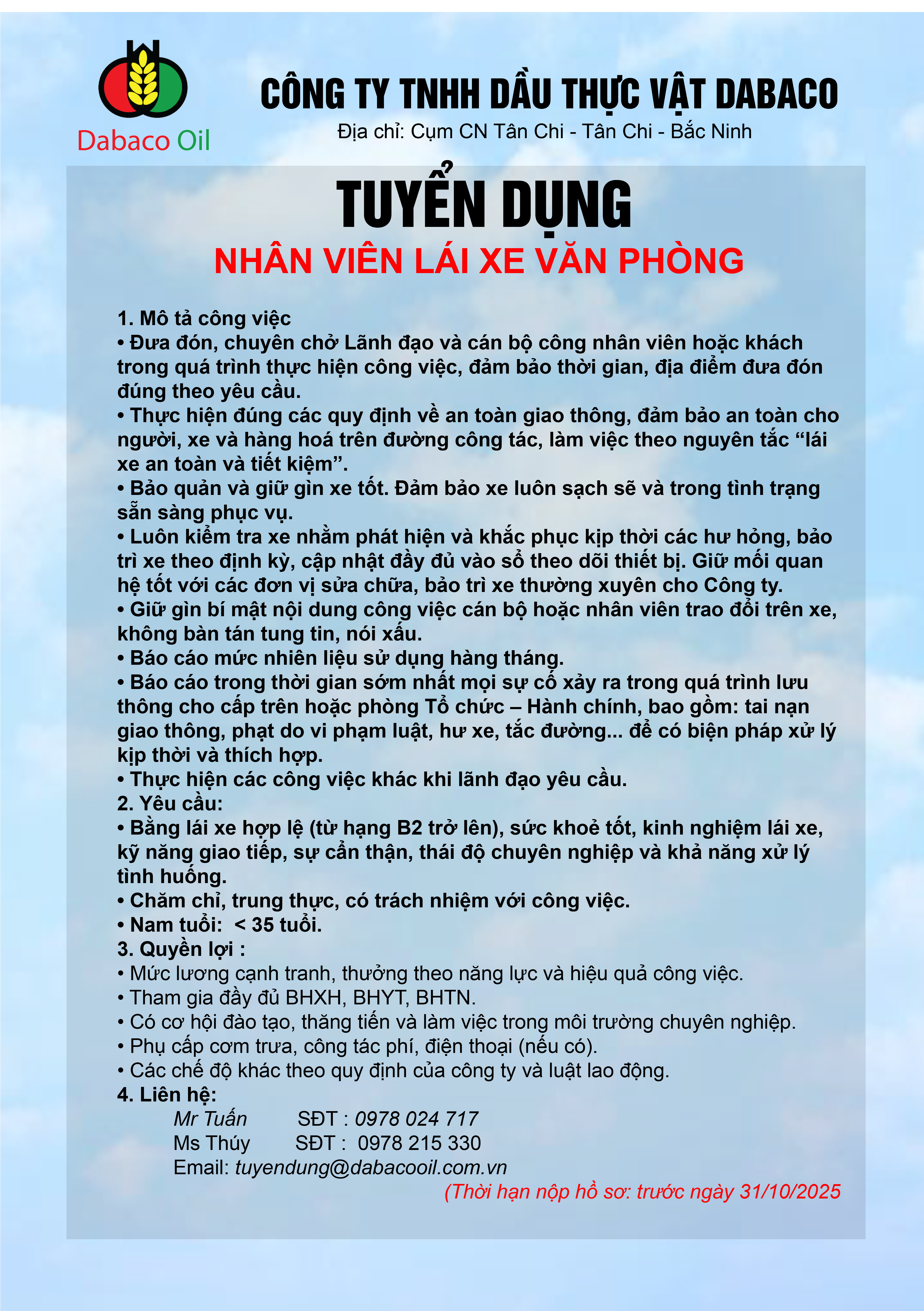 NHÂN VIÊN LÁI XE VĂN PHÒNG